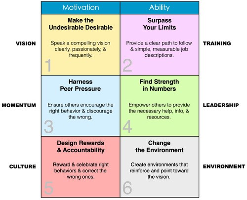 Overdetermine change by leveraging 6 sources of influence that both motivate & equip.